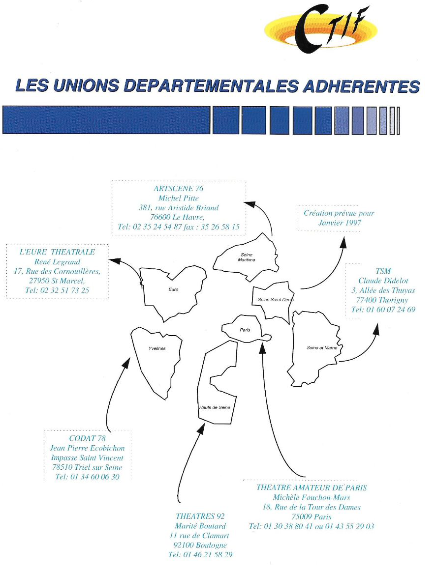 Je fus, en premier lieu, COLLECTIVITE THEATRALE DE L’ILE DE FRANCE (C.T.I.F.) composée d’Unions Départementales qui avaient pour but de :